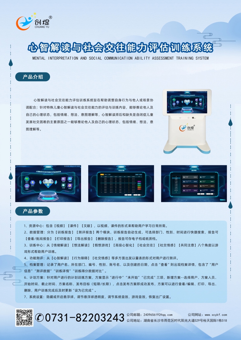 心智解读与社会交往能力评估训练系统旨在帮助调整自身行为与他人或场景协调配合;针对特殊儿童心智解读与社会交往能力的评估与训练内容,能够推论他人及自己的心理状态,包括情绪、想法、意图理解等,心智解读滞后和缺失是自闭症儿童发展社交困难的主要原因之一能够推论他人及自己的心理状态,包括情绪、想法、意图理解等。